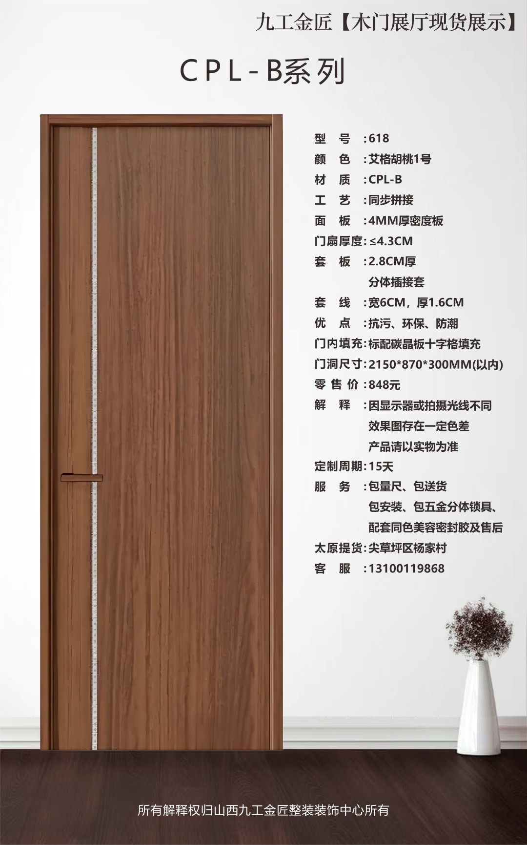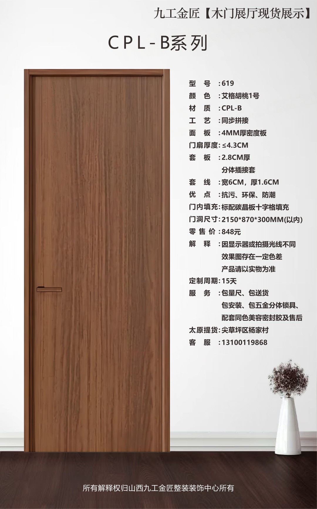 九工金匠皇朝雅居精品CPL-B系列木门 艾格胡桃1号