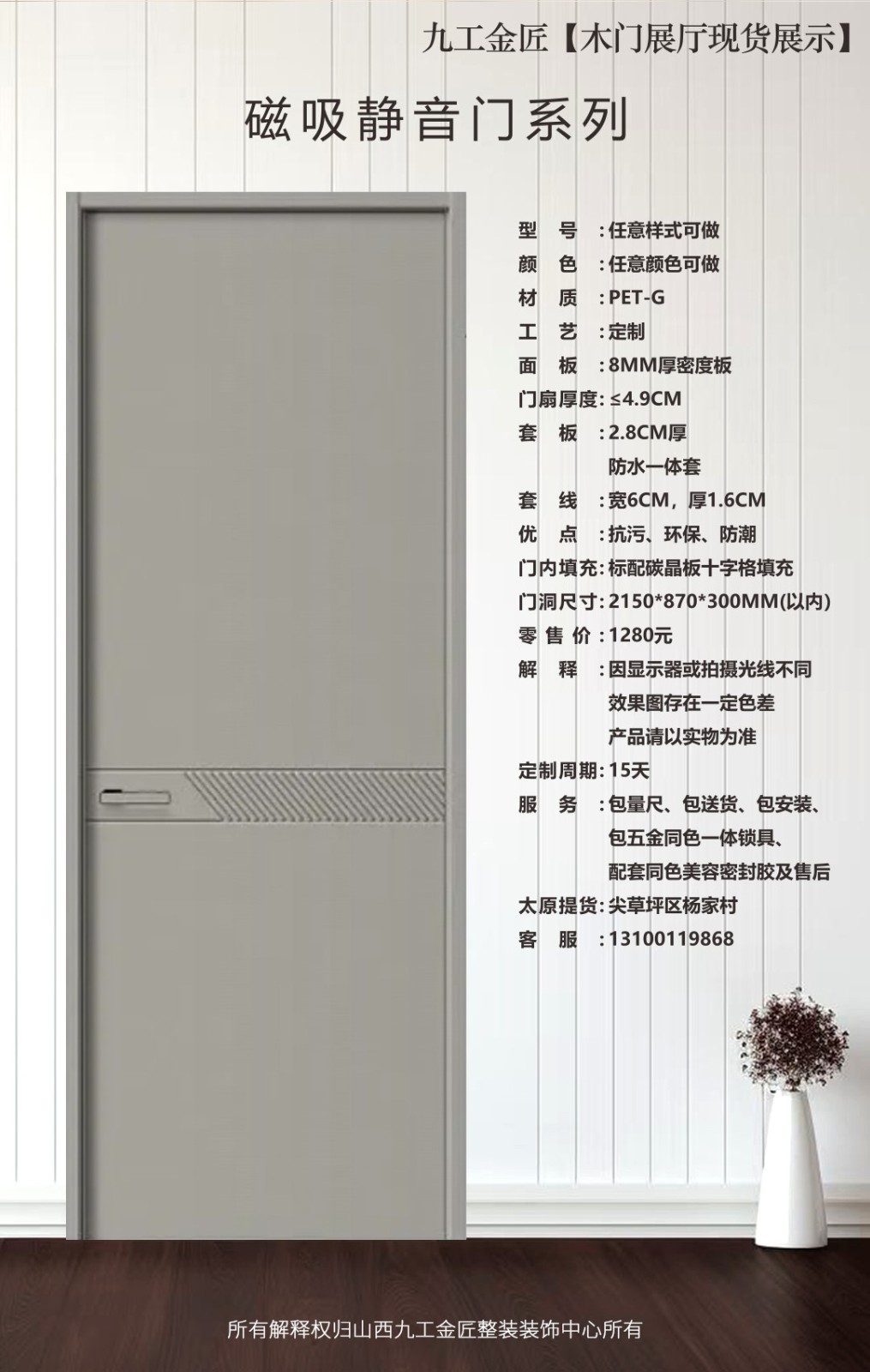 九工金匠皇朝雅居铝合金磁吸静音门系列木门
